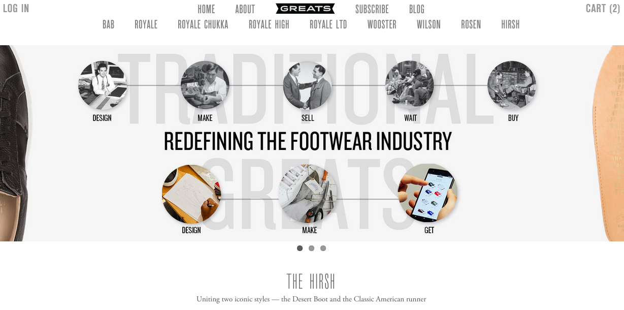 Tienda online de calzado deportivo para hombre cuyo valor añadido es la calidad de los materiales de fabricación. Intentan ofrecer una experiencia de usuario sin igual, mostrando fotografías de primer plano de estos materiales y varias imágenes de cada uno de los productos. Esto es conseguido en cada ficha de producto, pero no en la home.
