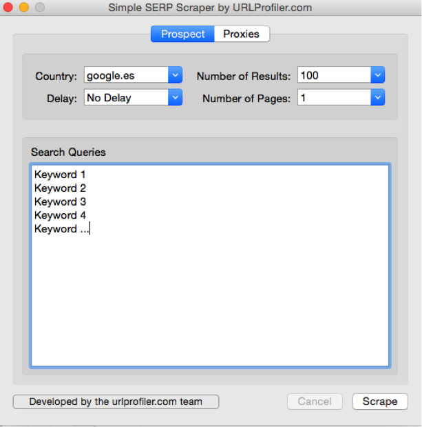 Finalmente, introducimos las palabras claves que queremos medir y ya tenemos todo preparado. Tenemos bien visible la opción de introducir nuestros proxies para evitar posibles problemas.