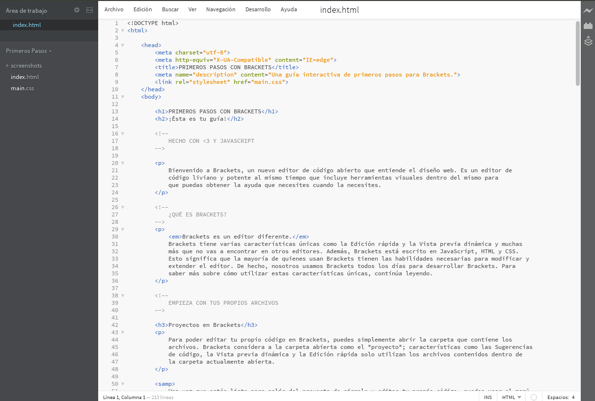Es el editor que suelo usar yo. Es Open Source y está programado en HTML, Javascript y CSS. Y sus plugins escritos también en esos lenguajes. Tiene opciones muy interesantes, como la posibilidad de importar un PSD o la conexión con Google Chrome, desde el que se puede ver los cambios que hagáis en un HTML en tiempo real (sin ser necesario guardar el archivo ni recargar la página).