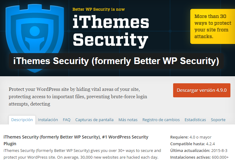 La solución para protegernos de este tipo de ataque consistirá en instalar el plugin Better WP Security.