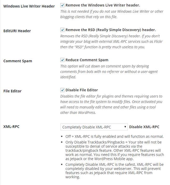 Os recomendamos que cada vez que expongáis un WordPress a Internet, instaléis este plugin y apliquéis la siguiente configuración genérica: