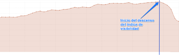 El cliente confió plenamente en nuestras sugerencias y, aunque tras la aplicación de todos estos cambios la web siguió sufriendo caídas de tráfico debido a lo que comentamos en el párrafo anterior, el índice de visibilidad comenzó a recuperarse en poco más de 6 semanas y actualmente sigue mejorando su posicionamiento y tráfico orgánico tal y como puede apreciarse en esta gráfica de su índice de visibilidad.