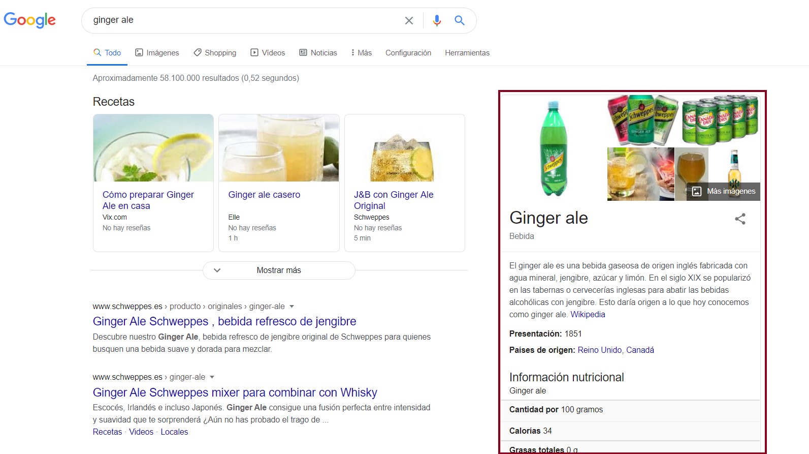 Como norma general, responden a consultas informacionales, y no tanto comerciales. Así que si bien es cierto que aparecen knowledge graphs con información neutral y objetiva cuando se busca, por ejemplo, “sol”, también lo es cuando buscamos marcas e incluso productos de marcas:
