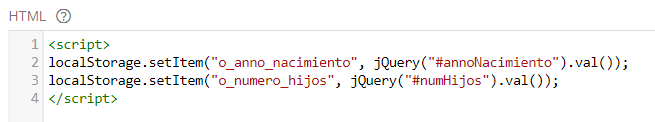 A través de un HTML personalizado de GTM guardamos esos valores en el localStorage del navegador para poder utilizarlos más tarde desde Google Optimize.