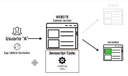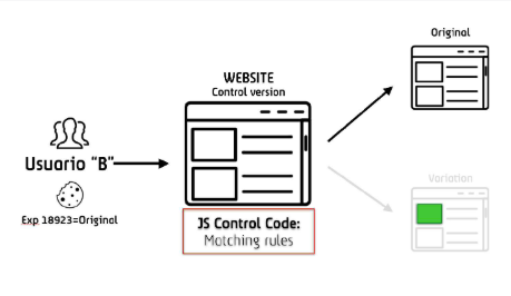 Cuando un usuario llega por primera vez a una página en la que tenemos implementado un test AB, se comprueba si cumple con las reglas de segmentación establecidas en el test, si es así, se le asigna una versión de la página (puede ser la original o una de las variantes creadas). En el momento en el que se le asigna y muestra la versión, se guarda una cookie en su navegador con la información del test y variante mostrada, de esta forma, en la próxima visita del usuario a nuestra página le mostraremos la misma versión.