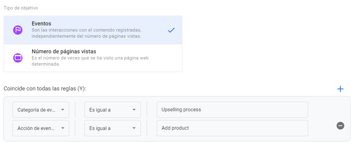 El objetivo principal es aumentar el número de contrataciones de producto, este evento se envía a GA en el momento en el que clicamos en continuar.