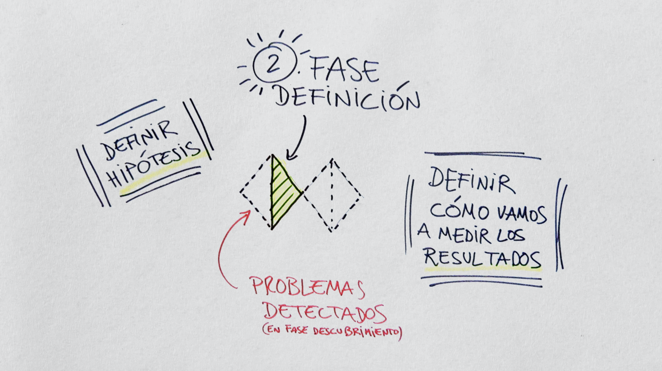 Segunda parte del primer diamante, todo lo que hemos podido descubrir en la primera fase tendremos que bajarlo a tierra, definiendo hipótesis y definiendo cómo vamos a medir los resultados.