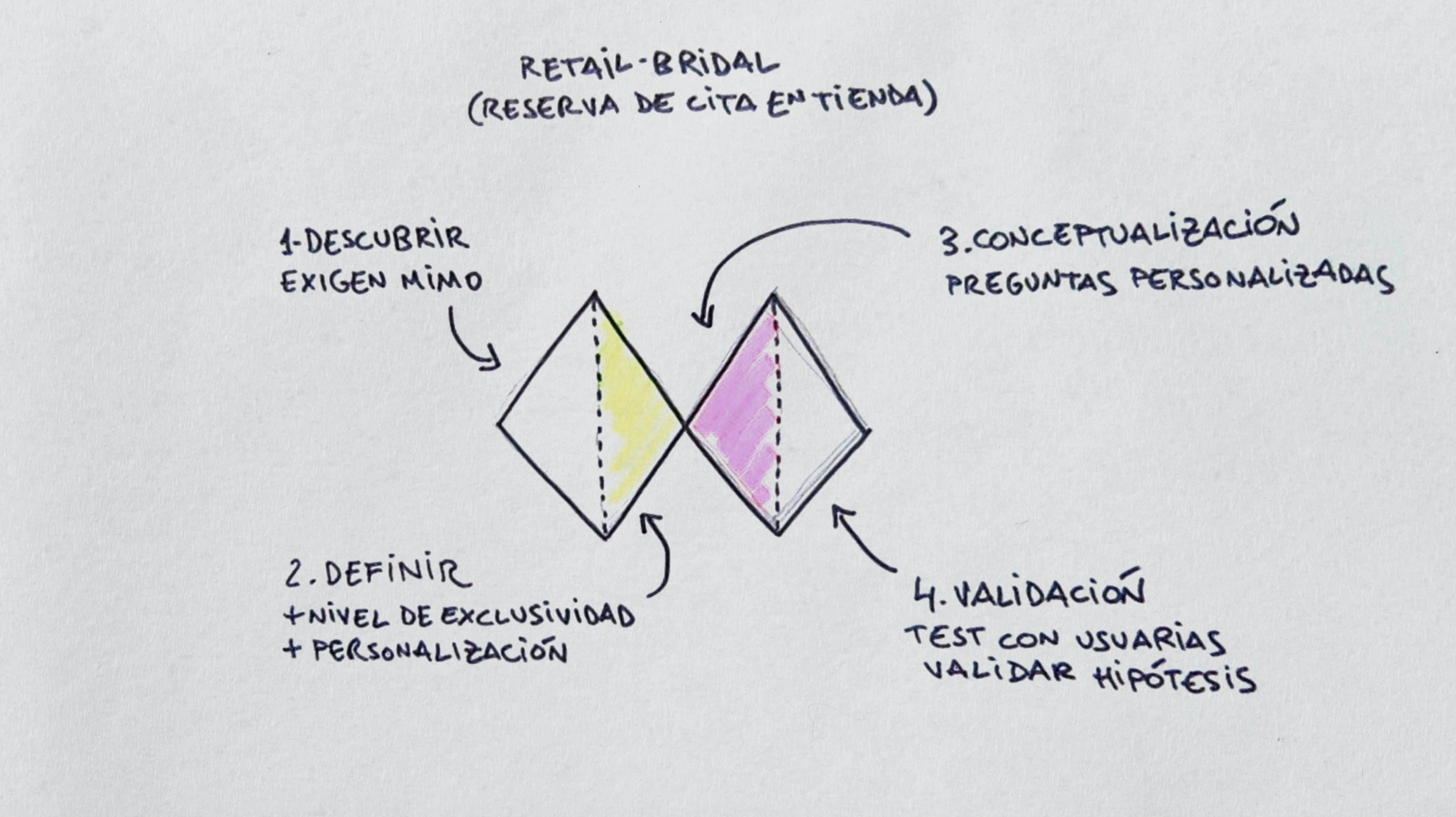 Gracias a poder realizar entrevistas con usuarias se pudo descubrir que este proceso de pedir una cita en tienda, se quedaba muy superficial, no percibían prácticamente nada que les incentivase más haya que rellenar un formulario con sus datos personales. En general las usuarias exigían un poco más de mimo ya que el día de la boda iba a ser posiblemente uno de los días más importantes de su vida.