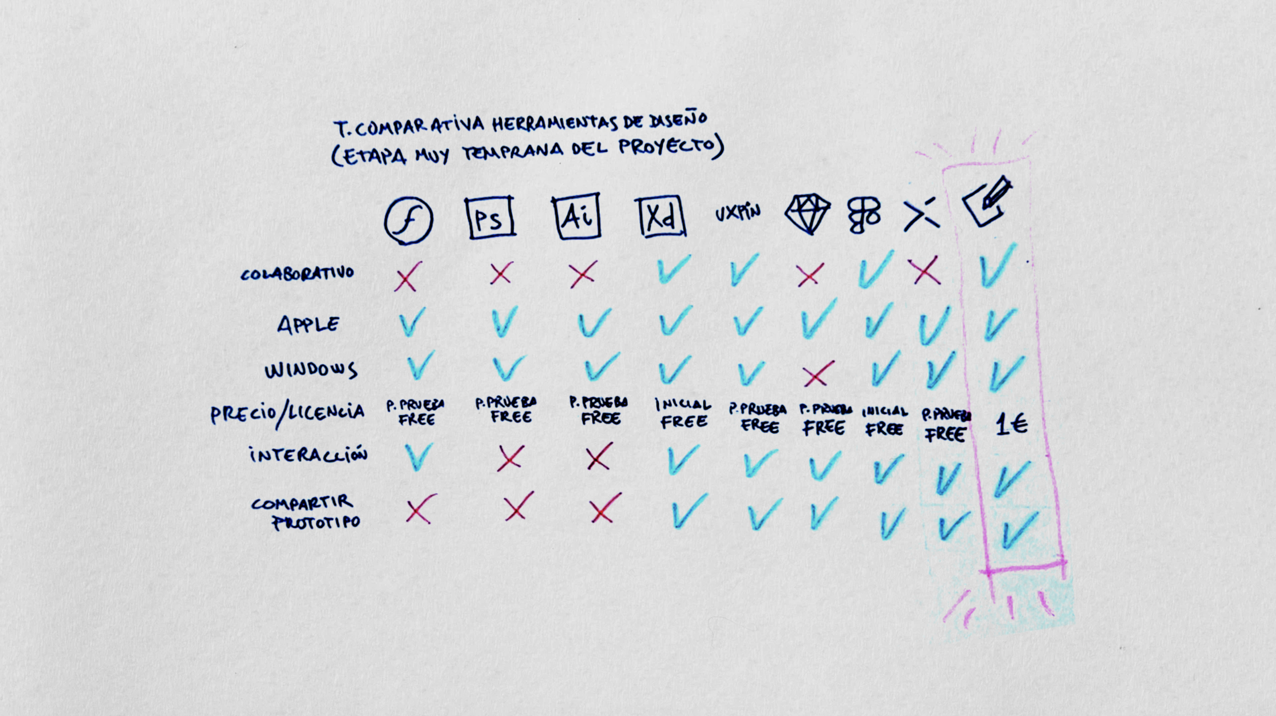 Hoy en día tenemos smartphones donde poder dibujar, tablets que nos permiten abocetar un flujo para ser validado por un tercero enviándolo por e-mail y un montón de dispositivos que nos facilitan la vida. Sí, la tecnología es buena, nos ayuda, eso está claro, no soy tan hater, pero… ¿Por qué le tengo tanto cariño a este soporte? porque a lo largo de los 20 años que llevo en el mundo del diseño, es el que más me ha ayudado a explicar cualquier punto de un proyecto. Por ejemplo, poder sentarte con el desarrollador del proyecto tras 25 emails y 15 llamadas y poder explicarle en 5 minutos con cuatro garabatos donde añadir un módulo en en el site y que él lo tache y dibuje cuál sería la posición técnicamente viable, no tiene precio… A día de hoy esto sigue funcionando. No hay que olvidar que un papel y un lápiz no necesitan de ningún tipo de aprendizaje tecnológico, todo el mundo tenemos uno a mano y sabemos utilizarlo.