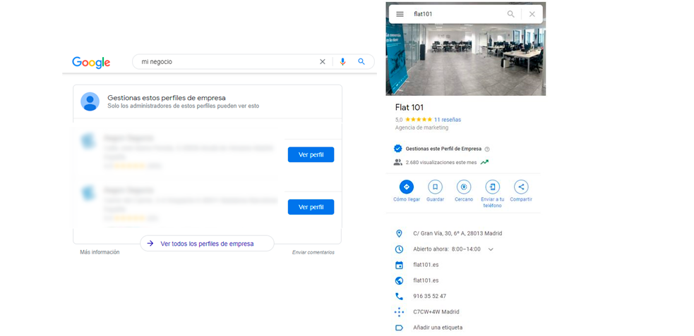 Además, si ya tenemos un perfil comercial reclamado y verificado, podremos editar y/o completar la configuración directamente en Resultados de búsqueda de Google y Maps.