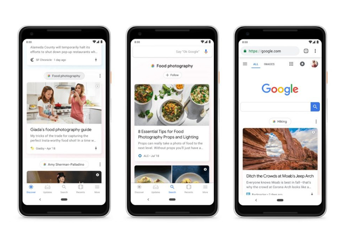 Además, en favor de su uso, los resultados de búsqueda de Google pueden mostrar AMP en formatos de búsqueda tales como el carrusel de Historias destacadas en la parte superior de la página de resultados o canales como Google Discover, feed personalizado de noticias y artículos relacionados con los intereses de los usuarios.