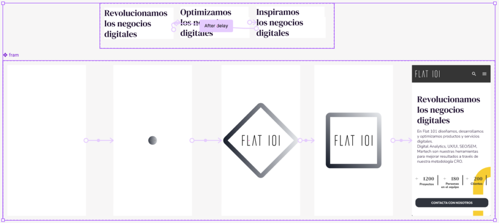 Un prototipo animado es básicamente una maqueta interactiva de una app o sitio web, pero con glow ✨. En lugar de solo mostrar pantallas estáticas, te permite interactuar con el diseño como si fuera el producto final. Puedes navegar entre pantallas, interactuar con botones y menús y ver efectos visuales que pueden apoyar y realzar tu diseño. Es como ver una película en lugar de sólo leer el guión.