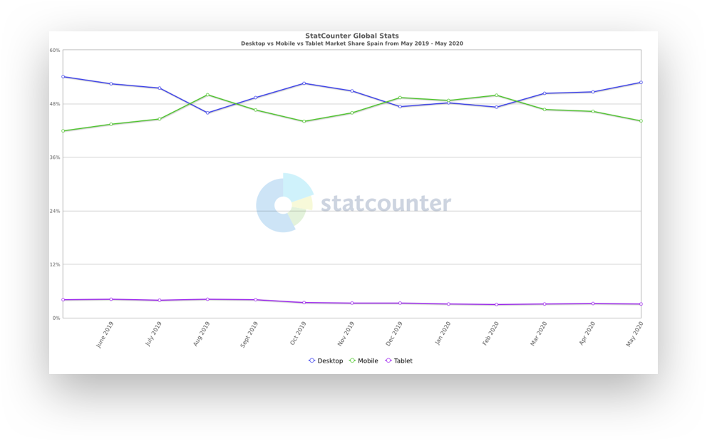 - ¿Disponemos de algún tipo de dato? En proyectos de rediseño, a la hora de priorizar en qué dispositivo y en qué resolución tenemos que diseñar, lo más efectivo es recurrir a datos cuantitativos de la web. Podemos conocer los datos de adquisición por dispositivo gracias a Google Analytics, o Adobe Analytics y priorizar en consecuencia. Si, por el contrario, no disponemos de acceso a estos datos, o se trata de una web de nueva creación, podemos recurrir a datos más genéricos: A través de herramientas como Global statcounter ?, podemos conocer estadísticas de uso de dispositivo por regiones, lo que es muy útil para conocer también las costumbres de uso de dispositivos de los usuarios más internacionales.