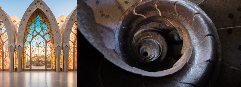 Arcos en La Pedrera y escaleras en La Sagrada Familia (Barcelona).