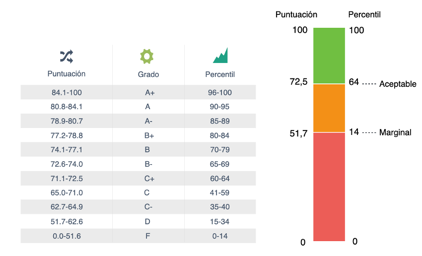 La escala SUS comprende puntuaciones en una escala centesimal, donde la puntuación media es de 68. Las puntuaciones del SUS no son porcentajes, por lo que una puntuación de 68 coincide con el percentil 50, es decir, es el dato más común.