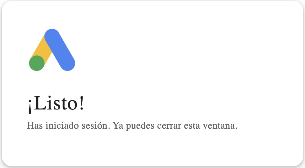 Una vez que hemos iniciado sesión, nos aparecerá el mensaje de la siguiente imagen. Por lo tanto, podremos cerrar el navegador y volver al programa de escritorio de Google Ads Editor.